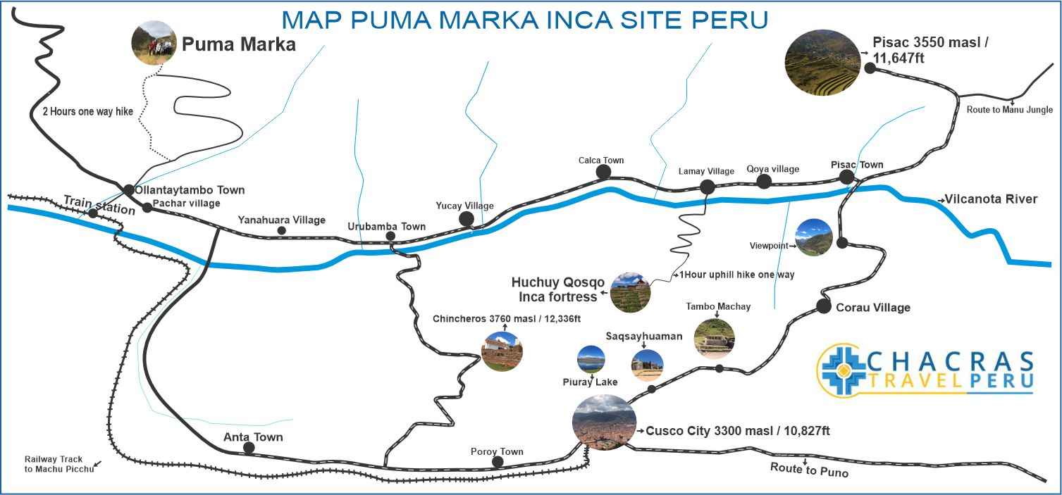 Located at an altitude of 3,550 meters (11,646 ft), Pumamarca offers panoramic views of the valley and a peaceful atmosphere ideal for hiking and photography.